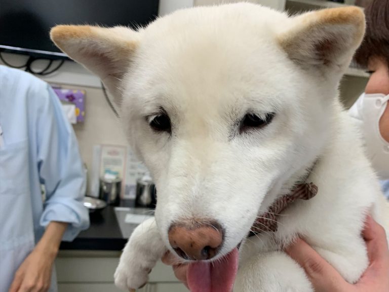 おはぎちゃんのお尻のにおいを嗅いだ直後、口を開けて少し険しい目つきに。「えっ…ちょっと、なにその匂い…。」といった様子でおはぎちゃんをじっと見ています。