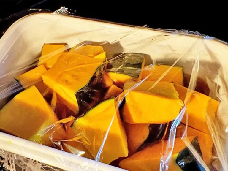 冷凍庫に入れる前に、1回の解凍ぶんずつをラップで包みます。それらをまとめて保存袋へ入れ、冷凍保存してください。
