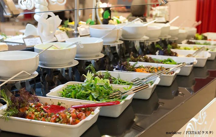 ビュッフェやバイキングは同時に複数の人が利用します。利用者全員が気持ちよく食事できるよう、衛生面やマナーに気をつけましょう。