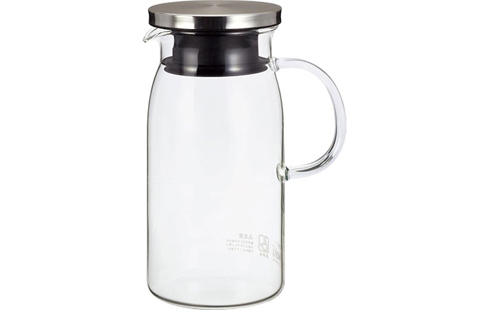 iwaki(イワキ) 耐熱ガラス ピッチャー 冷水筒 600ml ジャグ・600 ステンレス蓋 麦茶 お茶 ポット KT293-SV クリア