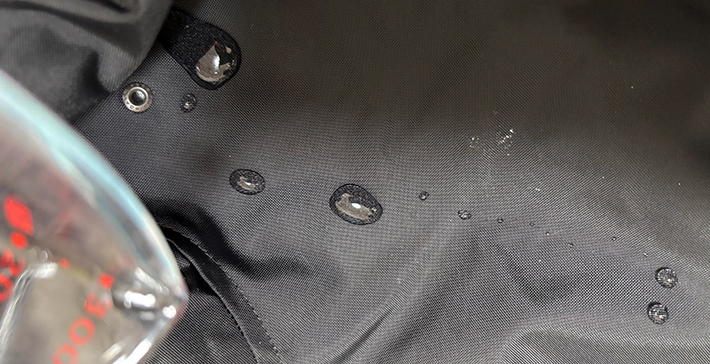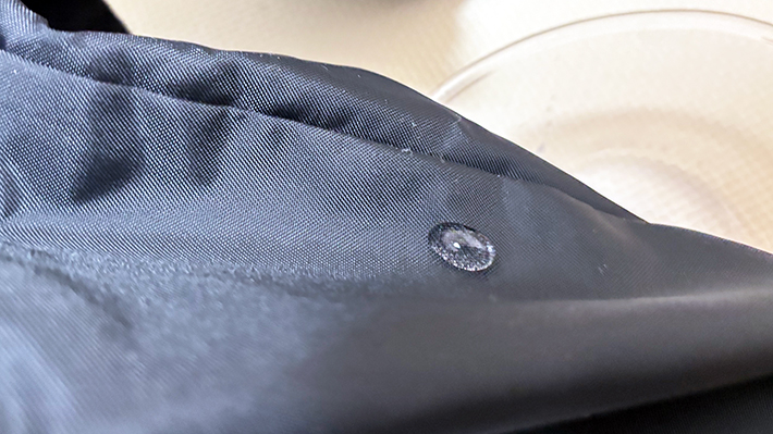 撥水加工が施されているので、垂らした水もご覧の通りです!