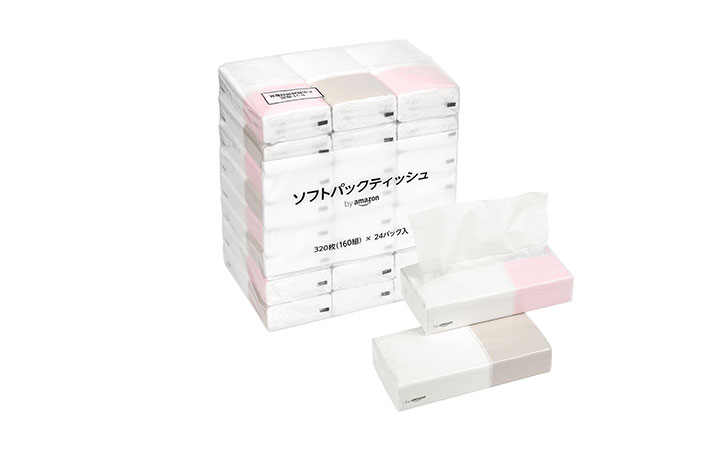 『by Amazon』のソフトティッシュパックは、量も質もGOODかつ、フィルム包装なので水回りでも安心して使えるのがポイントです。