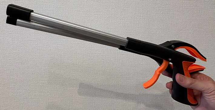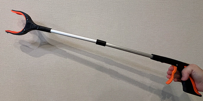 全長約80cmのマジックハンドは、グリップ部分のレバーを引くと、簡単にものを掴むことができますよ。
