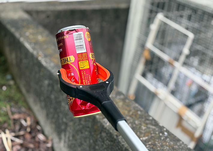 早速、マジックハンドを使って、いつもの場所の空き缶とペットボトルを無事に『救出』することができました!