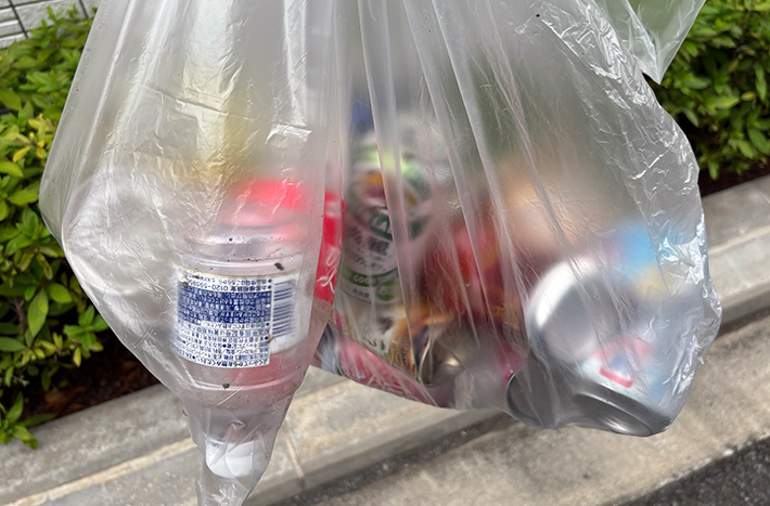 また、ゴミを拾うついでに、缶とペットボトルの分別もしたいため、ゴミ袋も持参しています。