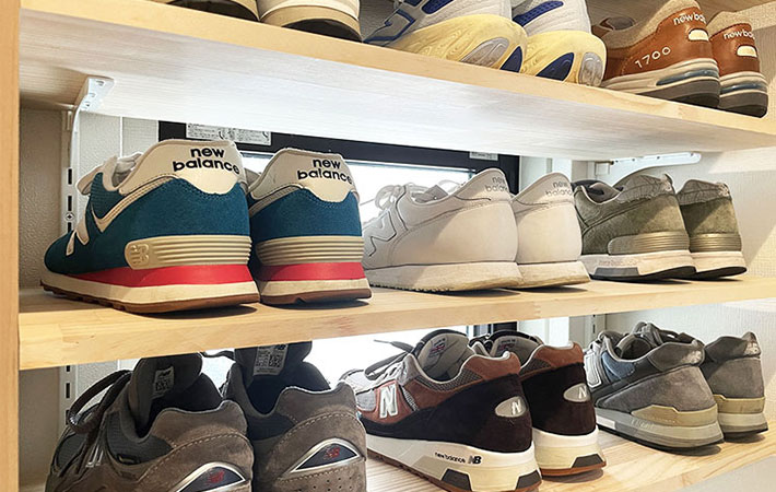 スニーカーを選ぶ時に歩きやすさや気持ちよさを重視しているので、購入した60足ほどのスニーカーの中でも、比較的多くニューバランスのスニーカーがありました。