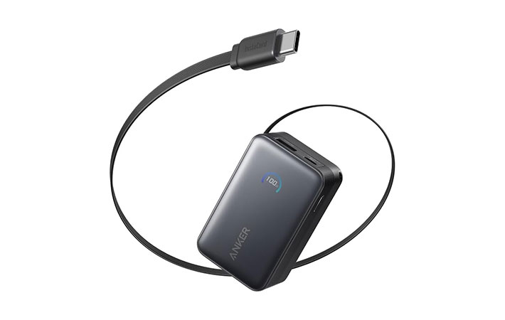 Anker Nano Power Bank (10000mAh, 45W, 巻取り式 USB-Cケーブル) 10000mAh 45W出力 / LEDディスプレイ搭載/USB-Cケーブル一体型/巻取り式ケーブル/iPhone 17 / 16 / 15シリーズ / iPhone Air/Android iPad その他各種機器対応 (ブラック)