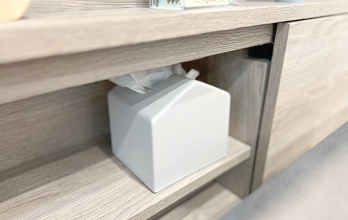 このティッシュケースには、一般的なサイズのティッシュボックスやソフトパックタイプのティッシュの中身をそのまま詰め替えることが可能です。