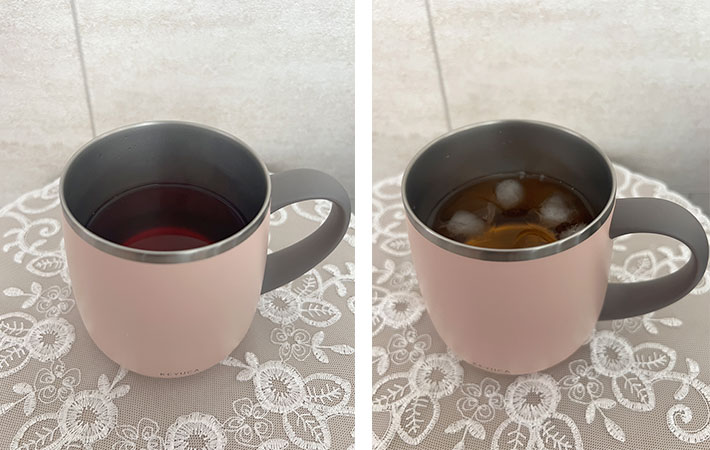 また、冷たい飲み物を入れても結露せず、熱い飲み物を入れても外側が熱くならないのも嬉しいポイントです。