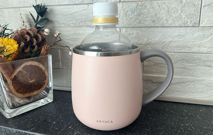 そして、マグカップとしてはもちろん、コンビニやカフェで買った飲み物をカップごと入れたり、300mLのペットボトルをそのまま入れたりと、カップホルダーとしても使えて便利ですよ!