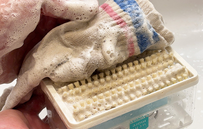 ・ケースごと手に持ってゴシゴシと靴下を洗うのに便利。