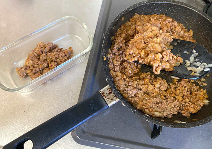 細かなひき肉も、パラパラにほぐすことができました。