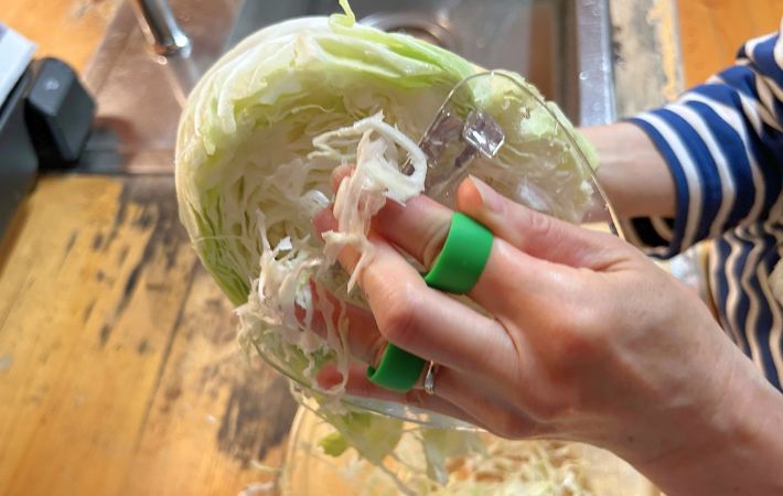 ピーラーを手にはめて、キャベツの断面を滑らせると…。