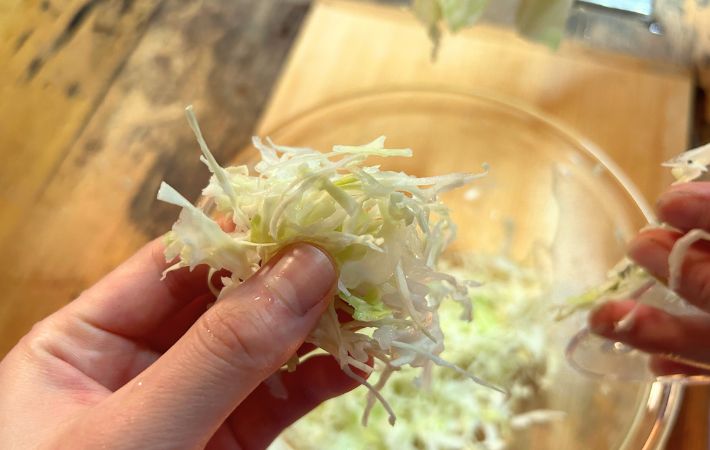 あっという間に千切りキャベツの完成!