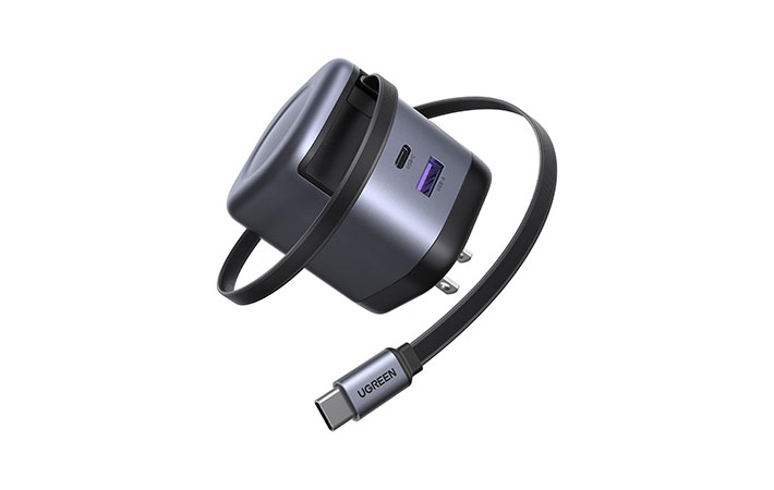 UGREEN 65W 充電器 【69CM 巻き取り式】 8階段調整可能 USB-Cケーブル内蔵 3ポート同時充電可能 PD3.0 旅行/出張/収納/スマホ/パソコン/タップレットなどType-C適合