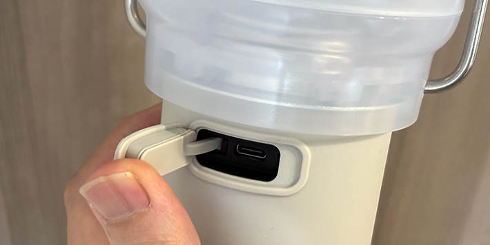 また、ランタンに装備されているシリコンカバーを開くと、USB-Cタイプの差し込み口が現れます。