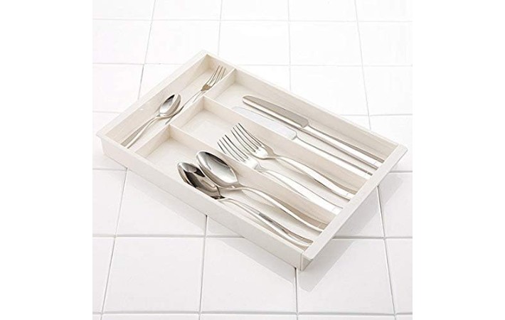 箸やスプーン、フォークなどを分けて収納できるので取り出しやすく、見た目もすっきり。