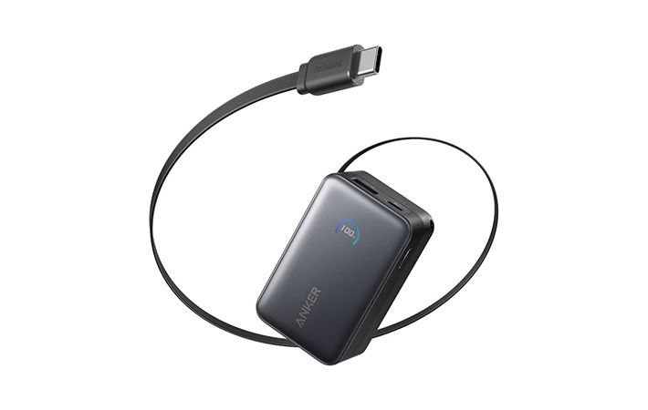 Anker Nano Power Bank (10000mAh, 45W, 巻取り式 USB-Cケーブル) 10000mAh 45W出力 / LEDディスプレイ搭載/USB-Cケーブル一体型/巻取り式ケーブル/iPhone 17 / 16 / 15シリーズ / iPhone Air/Android iPad その他各種機器対応 (ブラック)