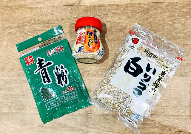 『ほんだし』、いり白ゴマ、青のり粉、すべての材料が相性抜群!
