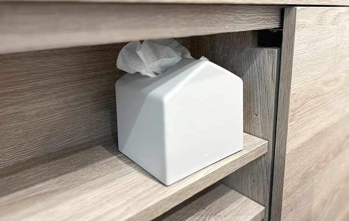 こちらもおうち型のシルエットで、ティッシュケースとダストボックスを一緒に置いておけば、サッとゴミを捨てられて便利なのはもちろん、見た目もとってもかわいいですよ!