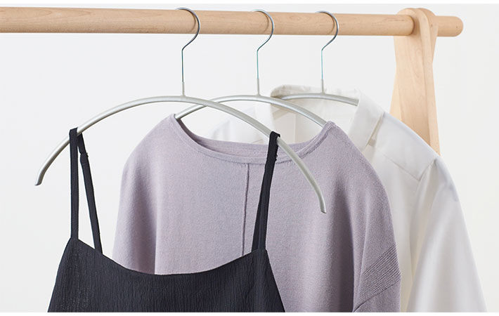 滑りやすい素材の服をかけて揺らしてもずり落ちないので、これからの季節に大活躍するニットをかけるのにぴったりです。