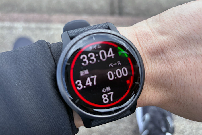 『Venu2』が示す心拍数を頼りに、呼吸を整えてから再度スタートします!