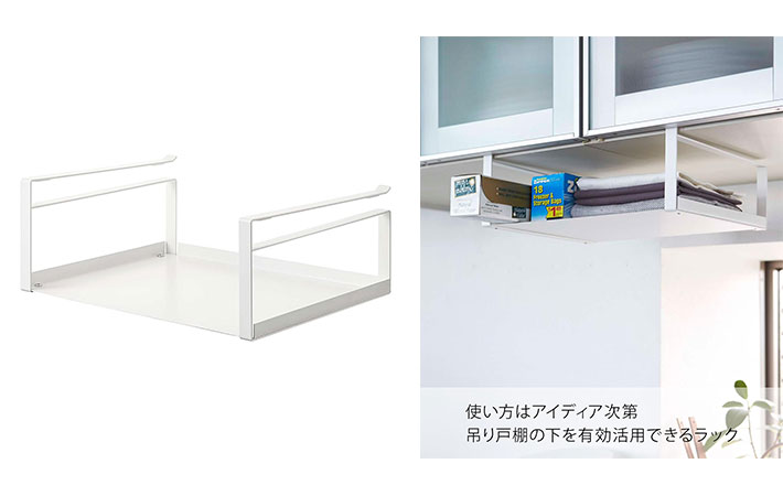 キッチンの吊り戸棚の下の空いたスペースを収納場所として有効活用できる『戸棚下収納ラック』。