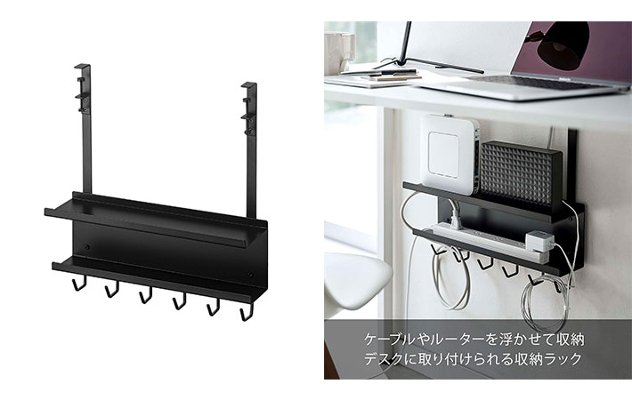 デスク下のスペースを利用して、ごちゃごちゃしがちなケーブルやルーターを浮かせて収納することができる『デスク下ケーブル&ルーター収納ラック』。