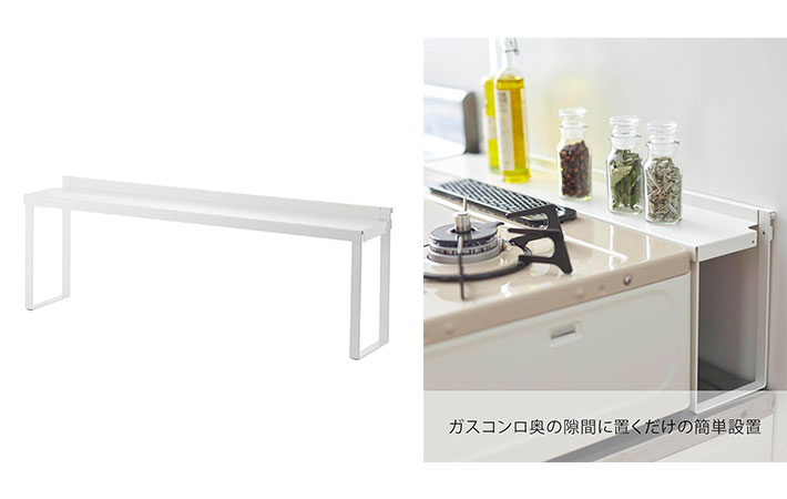 ガスコンロの奥の隙間に設置して使う『コンロ奥隙間ラック』。