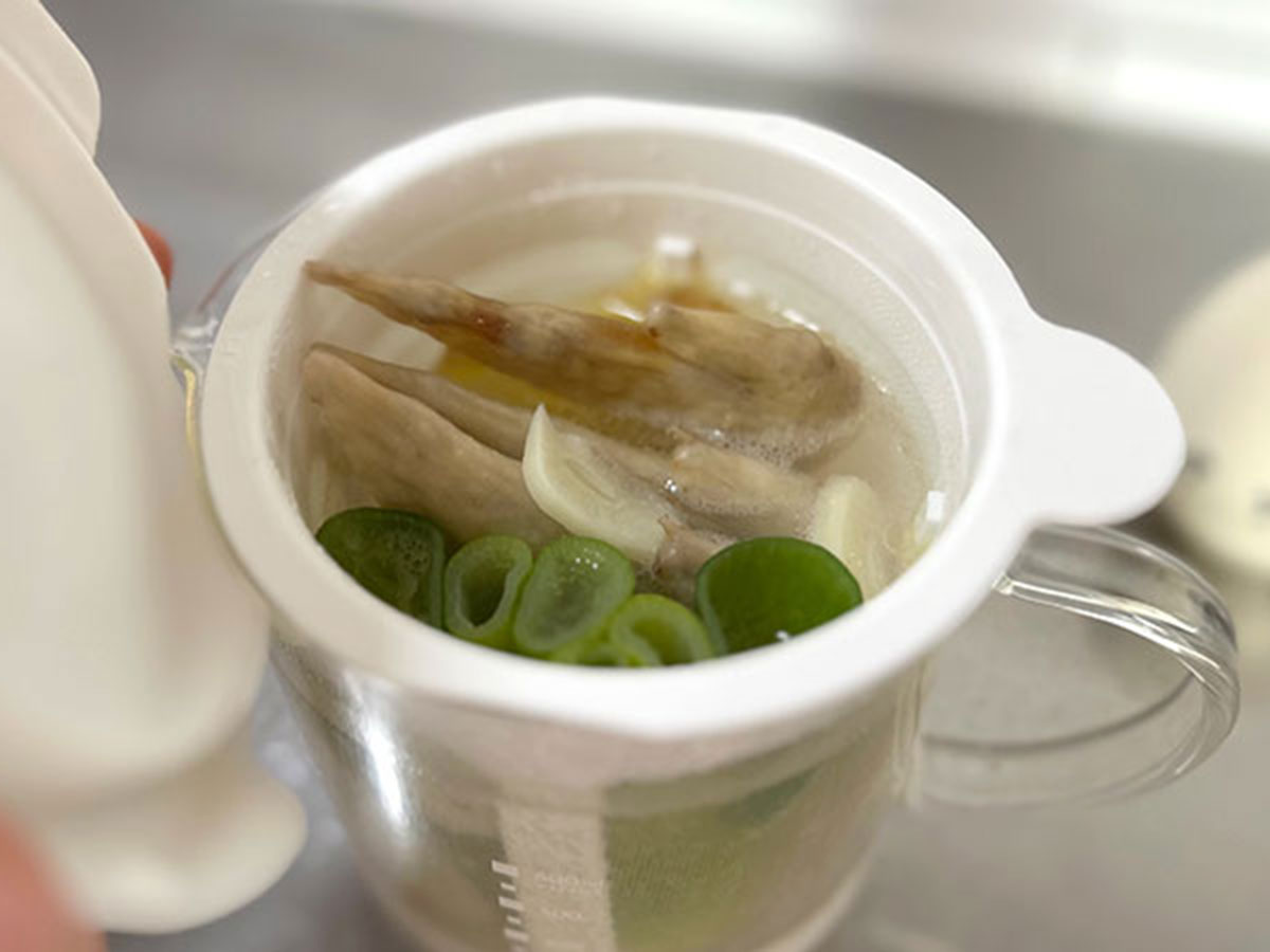 たったこれだけ、あっという間に中華だしの完成!短時間でおいしいだしを取ることができました。