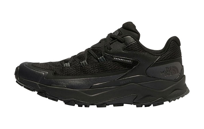 独自開発した特殊な防水透湿素材、歩行や走行時のエネルギー効率を追求したVECTIVテクノロジー、耐久性に優れた人工皮革、通気性を高めるメッシュ、防護性が高いTPUオーバーレイなど、靴全体に『ノースフェイス』の技術が詰め込まれています。