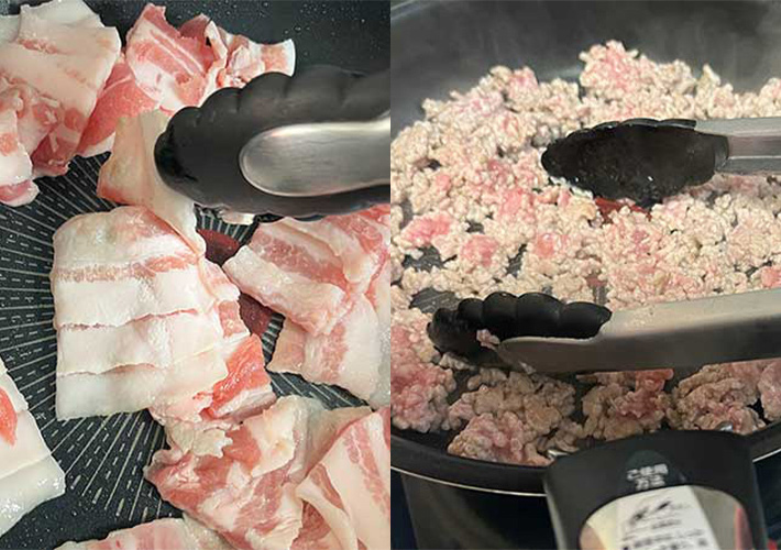 重なってくっついている肉同士を剥がしたり、ひき肉をパラパラにほぐしたり。
