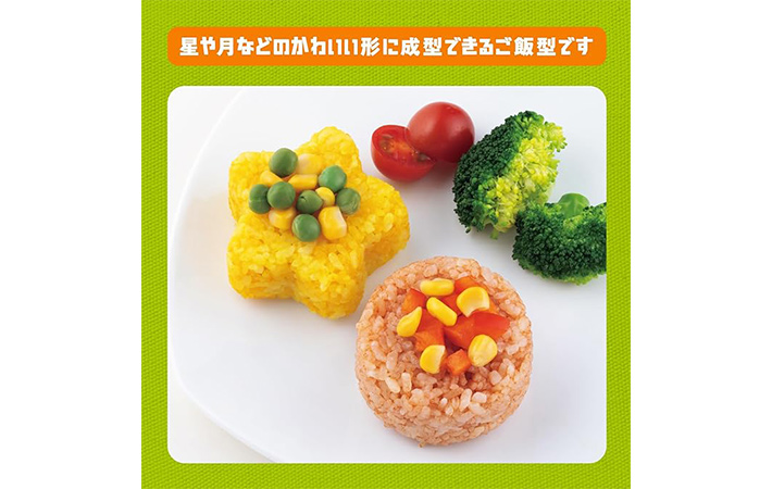 このご飯型に、ご飯を詰めて押し出せば、かわいい丸や星型になりますよ。