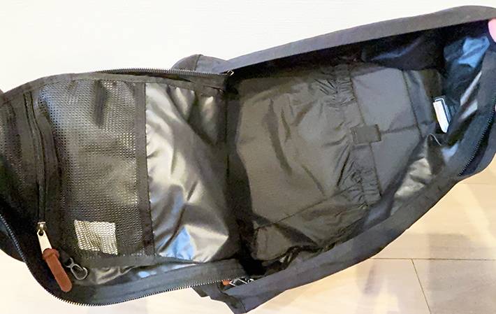 オーガナイザーや付属ポーチもあるので、歯ブラシや洗顔料、替えのネクタイや靴下などサッと取り出せるのはありがたいですね。