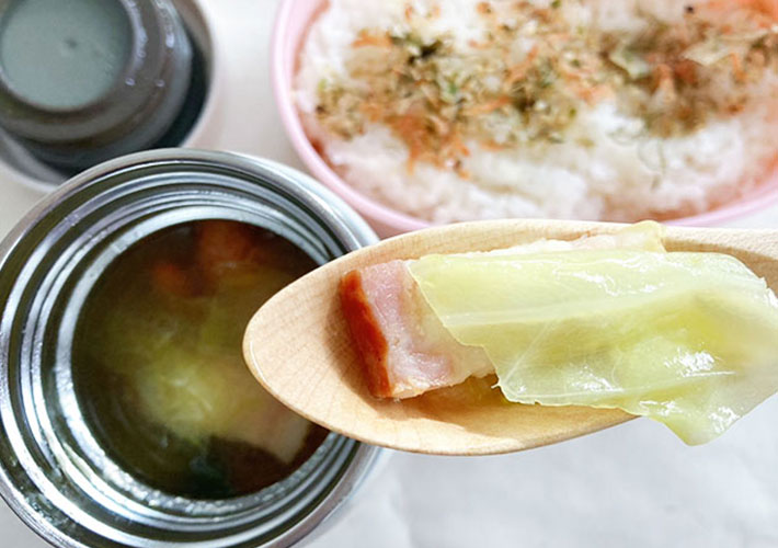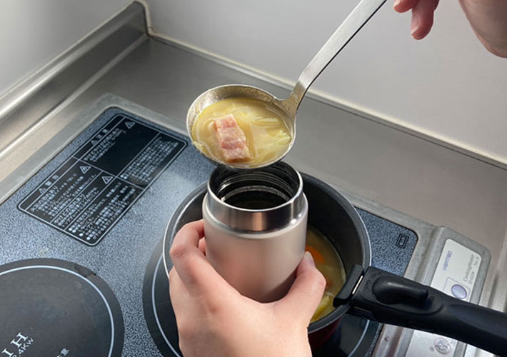 あらかじめスープジャーにお湯を入れてあたたかくしておくと、よりスープが冷めにくくなるのでおすすめですよ。