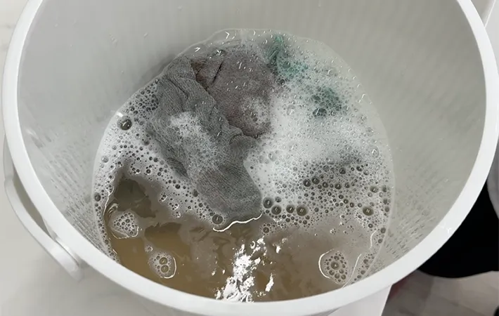 お湯を使うことで洗剤の力が最大限に働くので、繊維の奥にこびりついた汚れが自然に浮き上がります。