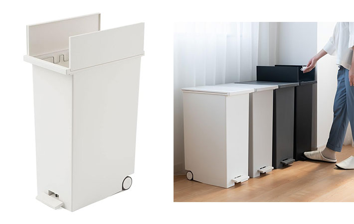 左右両方に開く観音開きの蓋を採用しており、蓋を開いた時に高さを抑えられるので、食器棚やカウンターの下などに置いて使っても、蓋を全開にしてゴミを捨てることができます。