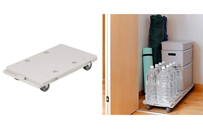 ペットボトルのストックや、観葉植物や家電といった重いものをラクに移動できるキャリー。
