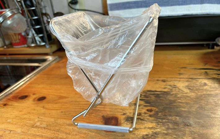 ポリ袋を引っかけることができるホルダーで、キッチンで使用すれば調理中に出るゴミをその場で捨てることができて便利です。