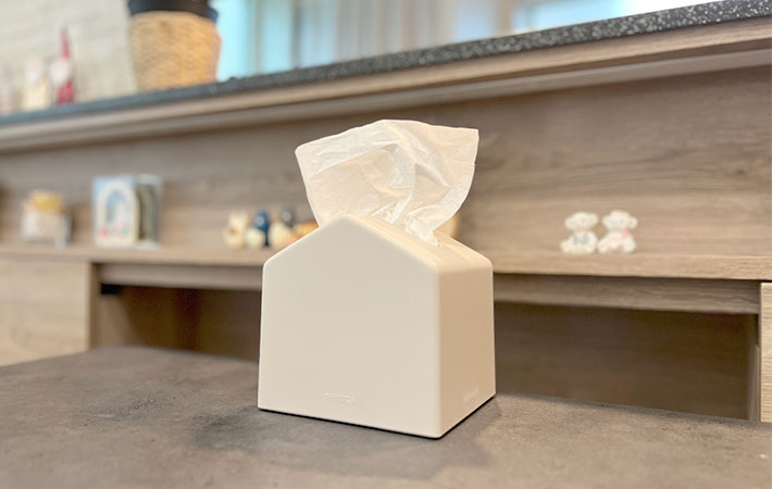 ティッシュを押し上げる構造を採用しており、最後の一枚までスルッと使いきれますよ。