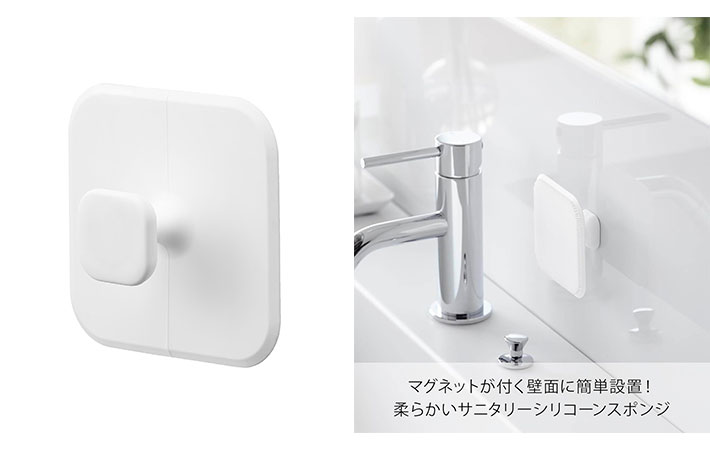 洗面台など、マグネットがつく場所に設置できるシリコーン製のスポンジ。