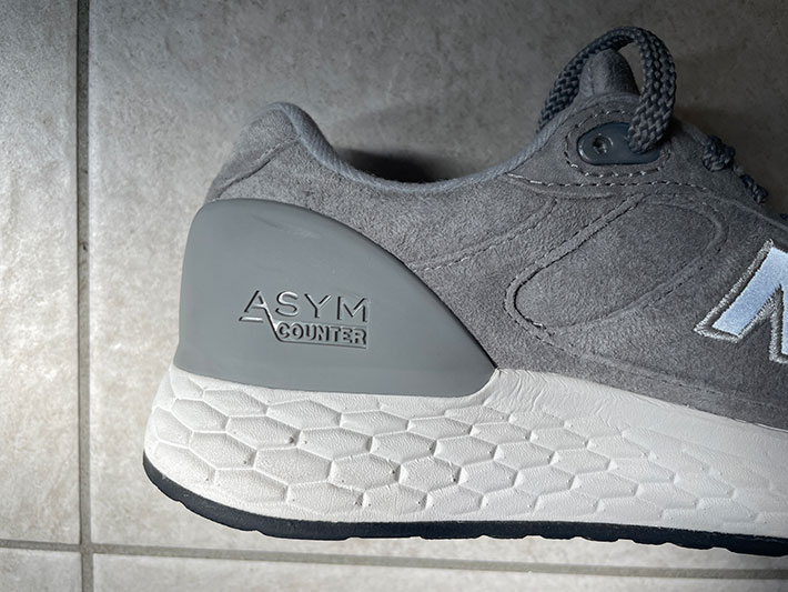 ソール部分の『フレッシュフォーム』に加えて、かかとパーツの『ASYM(アシム)カウンター』が、ホールド感をアップ!
