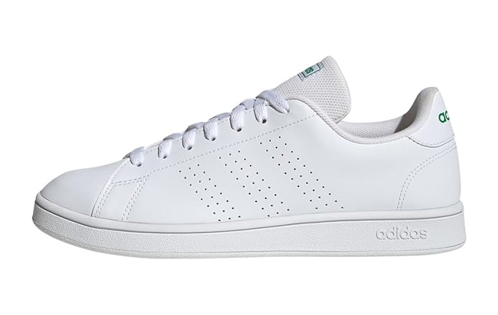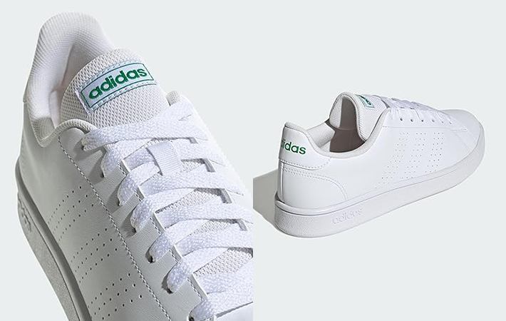クリーンなホワイトに施されたグリーンのワンポイントロゴと、パーフォレーション加工のスリーストライプスがさりげなくておしゃれですね。