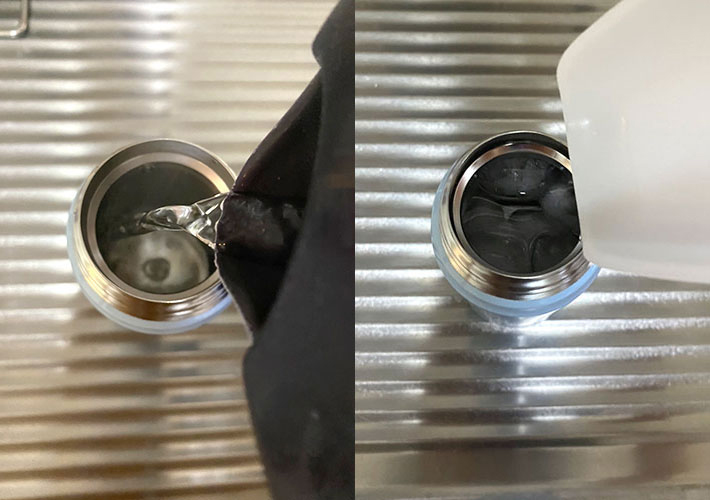 試しに沸騰したお湯、キンキンに冷やした氷水を入れ、それぞれ6時間後の状態を確認してみました。