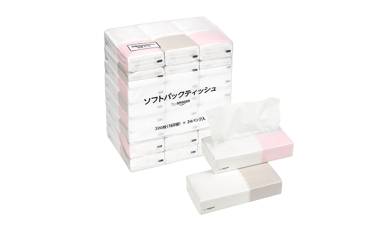 by Amazon ソフトパックティッシュ FSC認証紙 320枚160組(2枚重ね) x 24パック入 ホワイト