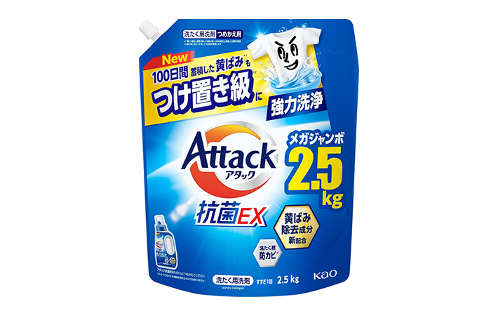 アタック 【大容量】抗菌EX 洗濯洗剤 液体 100日間蓄積した黄ばみもつけ置き級に強力洗浄 つめかえ用 2500g