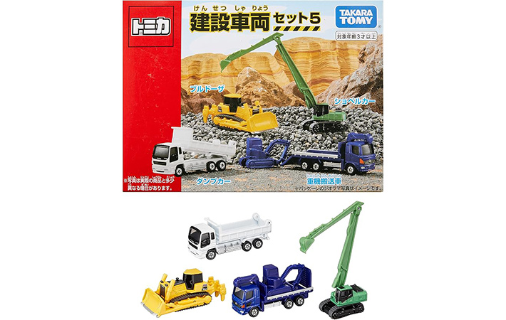 こちらは、ショベルカーやブルドーザーなど4種類の建設車両がセット。