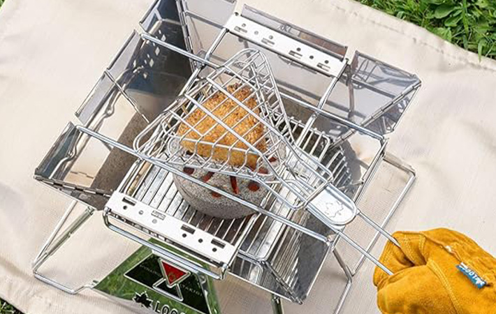 スチール素材のフレームにおにぎりを挟み、醤油を塗って焼けば、焼きおにぎりが簡単に作れますよ。