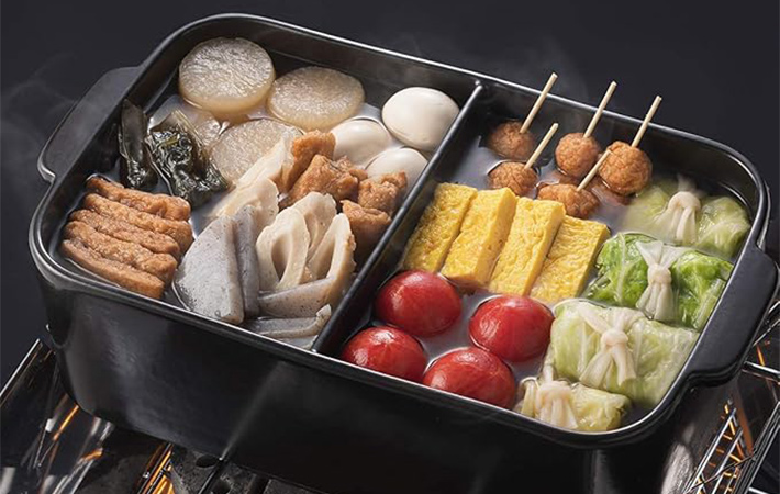 『仕切りおでん土鍋』なら、中まで染みた大根、キュッと締まった歯ごたえの焼きちくわ、鮮やかな黄色が見た目も楽しめるたまごなど、抜群の雰囲気で食べられますよ。