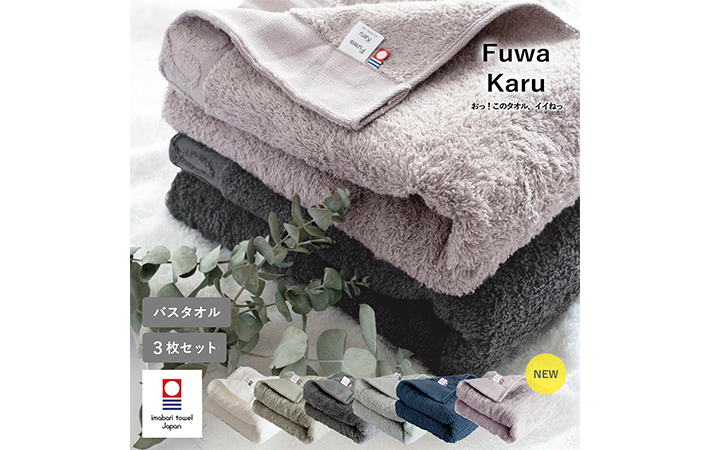 今治タオル バスタオル 3枚セット FuwaKaru ふわかる 送料無料 今治 セット まとめ買い 速乾 軽量 吸収 60×125cm 綿100% ヘアドライ 今治産 日本製 ふわふわ おしゃれ ベージュ グレー オフホワイト ネイビー 福袋 SALE セール